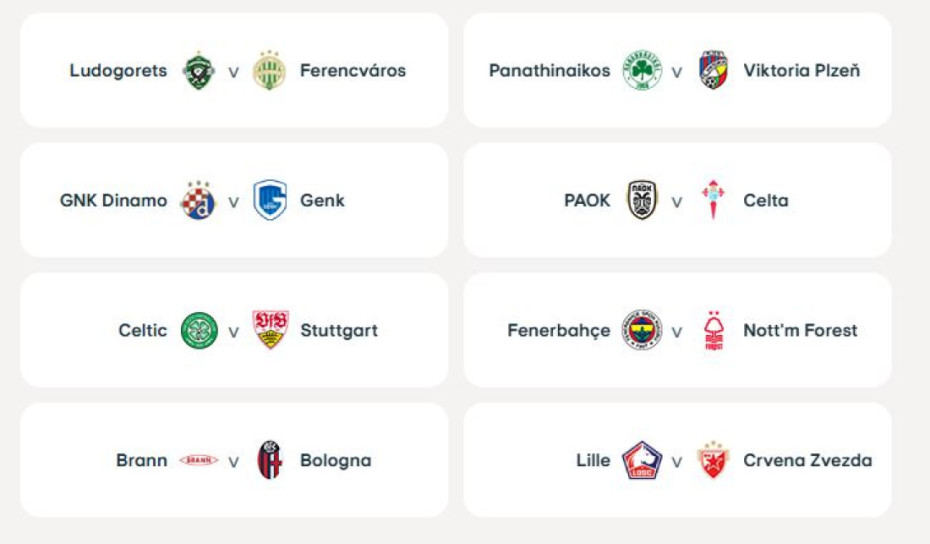 Međutim, važno je napomenuti da žreb ne znači da će se bilo koji od ovih timova nužno sastati. Crvena zvezda i Selta mogu da igraju samo protiv PAOK-a i Lila, Notingem Forest i Viktorija Plzen samo protiv Fenerbahčea i Panatinaikosa, Štutgart i Ferencvaroš samo protiv Seltika i Ludogoreca, dok će Genk i Bolonja igrati isključivo protiv Dinama iz Zagreba i Brana.
