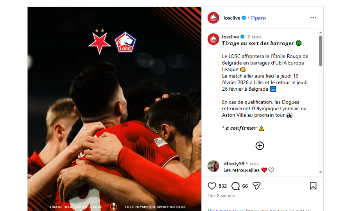 Prvi susret je na programu u Francuskoj 19. februara, revanš će biti odigran na "Marakani" sedam dana kasnije, a nakon žreba, Lil se osramotio na zvaničnom klupskom profilu.