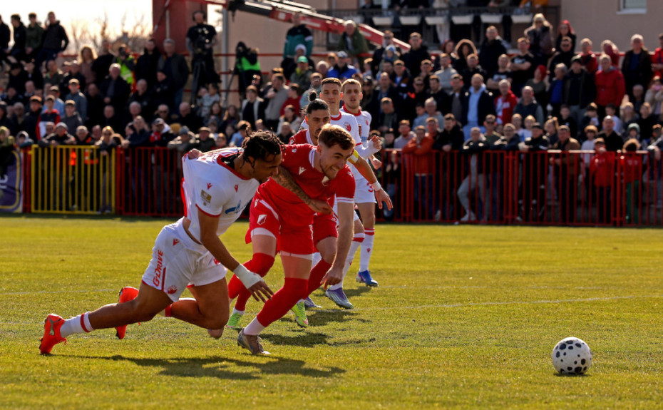 Zvezda je posle devet devet minuta vodila sa 2:0. Golom Bruna Duartea sa bele tačke vodila je od šestog minuta utakmice. Jovan Šegrt je dosudio jedanaesterac za crveno-bele posle obostranog povlačenja između Enema i štopera domaćih Slađana Čukića. Brazilac je bio siguran sa penala.