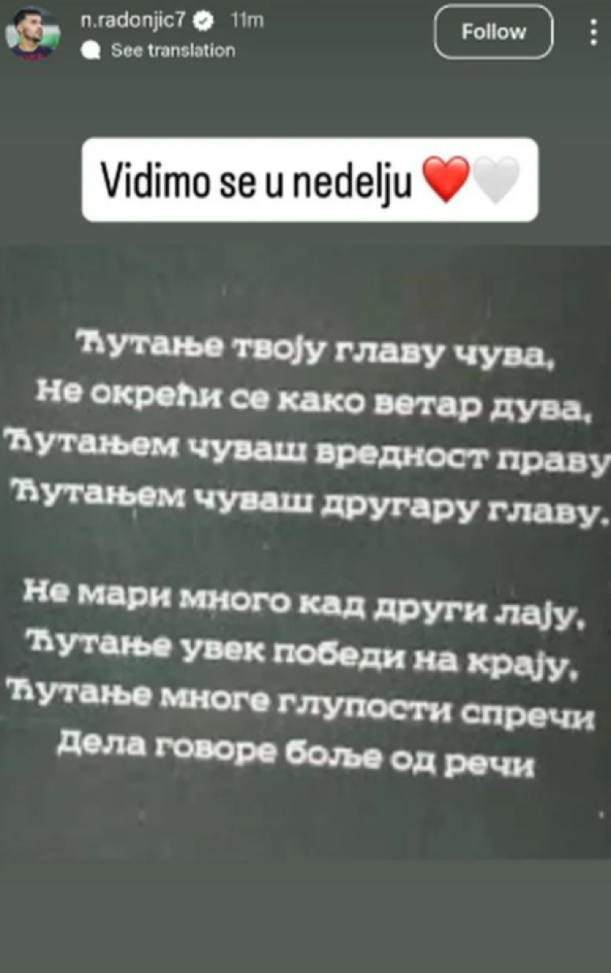 "Vidimo se u nedelju", napisao je Radonjić, a potom dodao:
