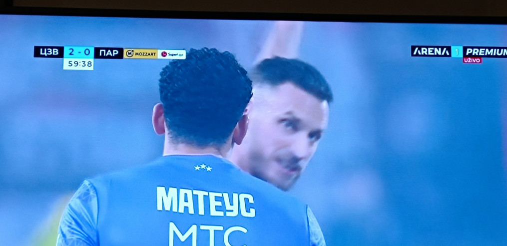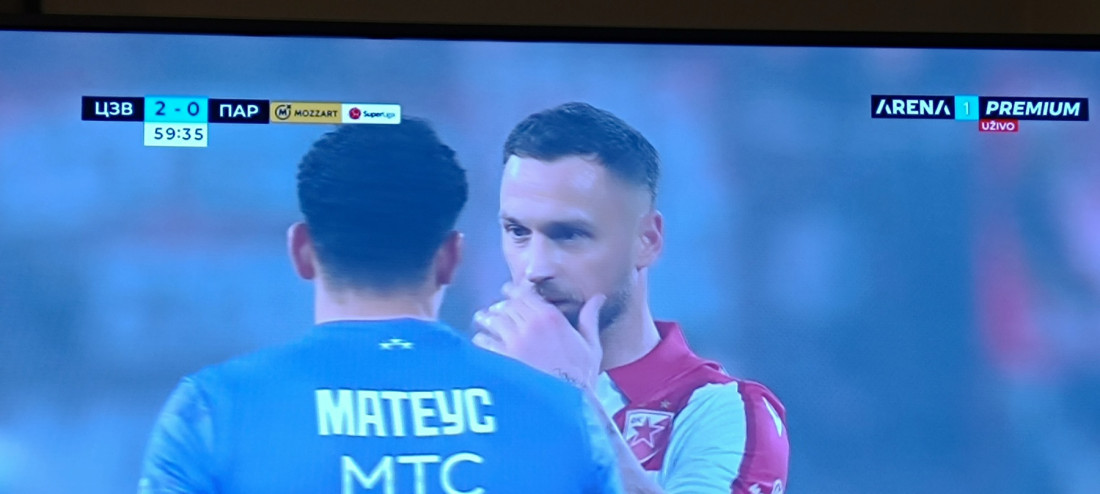 Nakon što je Partizanu poništen penal posle reakcije VAR-a, jer je Kostić ranije krenuo, Mateus je poslao dugu loptu ka saigračima.