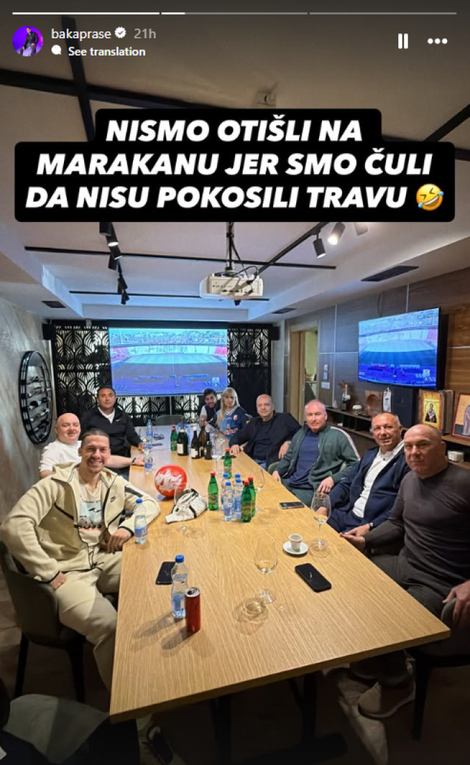 "Nismo otišli na "Marakanu" jer smo čuli da nisu pokosili travu", napisao je Baka Prase na Instagramu.