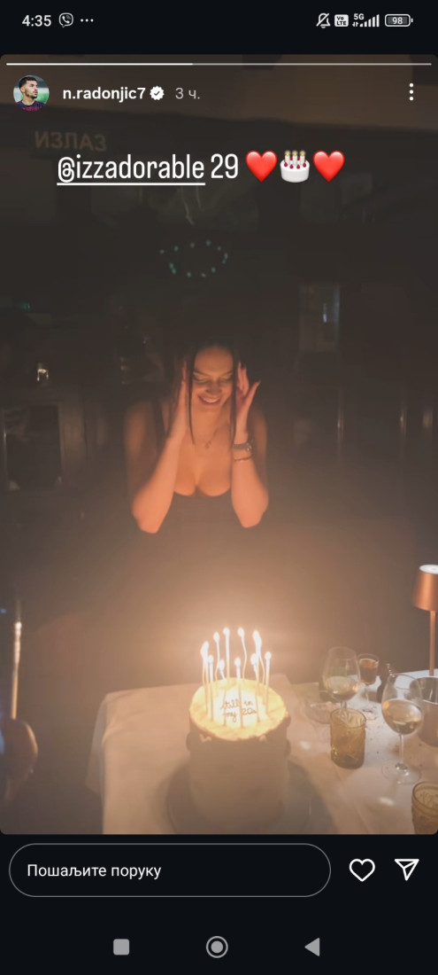 Pred utakmicu sa najvećim rivalom Partizanom na stadionu Rajko Mitić (18.00 Arena premijum 1) Nemanja Radonjić se provodi. Objavio je noć uoči derbija snimak na Instagramu sa proslave rođendana devojke Isidore Kadijević. Ako se nekao nadao da bi moglo nešto da se promeni i da padne pomirenje crveno-belih i Radonjića, posle ovog snimka mu je sigurno jasno da od toga neće biti ništa.