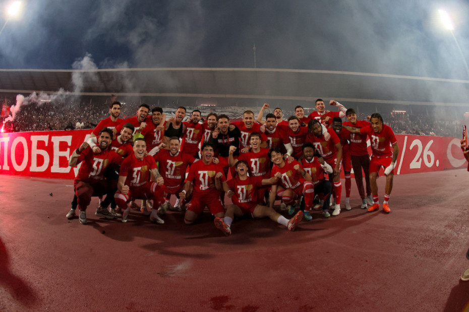 Crveno-beli su pred svojim navijačima na stadionu "Rajko Mitić" pobedili Partizan (3:0) i osvojili devetu u nizu titulu šampiona Srbije, a 37. u istoriji.