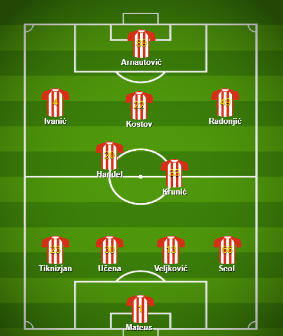 Iako Milojević na raspolaganju ima ogroman roster, prostora za manevar nema mnogo. Iskusni Aranđelovčanin će ponovo tumbati poslednju liniju koja je imala najviše problema u dosadašnjem delu sezone. Pored standardnog Mateusa i bekova Seola i Tiknizjana, u centralnom delu poslednje linije ovoga puta će biti Miloš Veljković i Tebo Učena, dok na klupi ostaju Rodrigao i Stefan Leković. Na sredini terena će prednost u odnosu na Timi Maks Elšnika dobiti Tomas Handel koji bi u paru sa Radetom Krunićem trebao da povezuje Zvezdine linije.