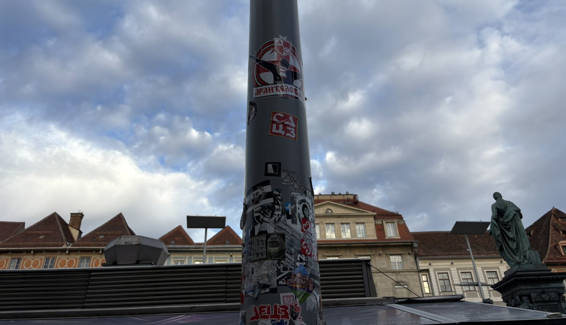 Upravo na par sati do početka utakmice, navijači Crvene zvezde su se okupili u centru Graca, a na banderama su zalepili prepoznatljive navijačke nalepnice.