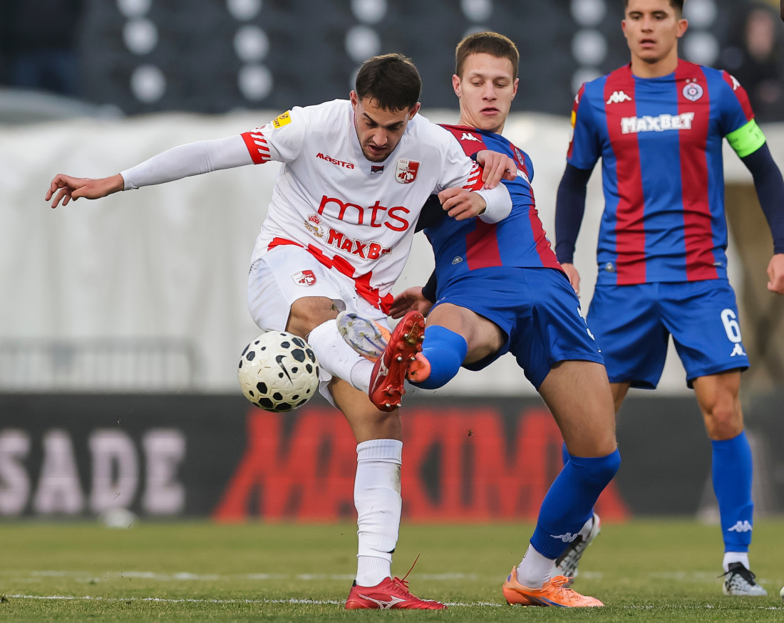 1. minut - Počeo je duel u Humskoj, prvi u napad kreću gosti iz Niša. Partizan je stigao do lopte i probao dodavanjem ka Vukotiću, ali je dobro intervenisala odbrana Radničkog.