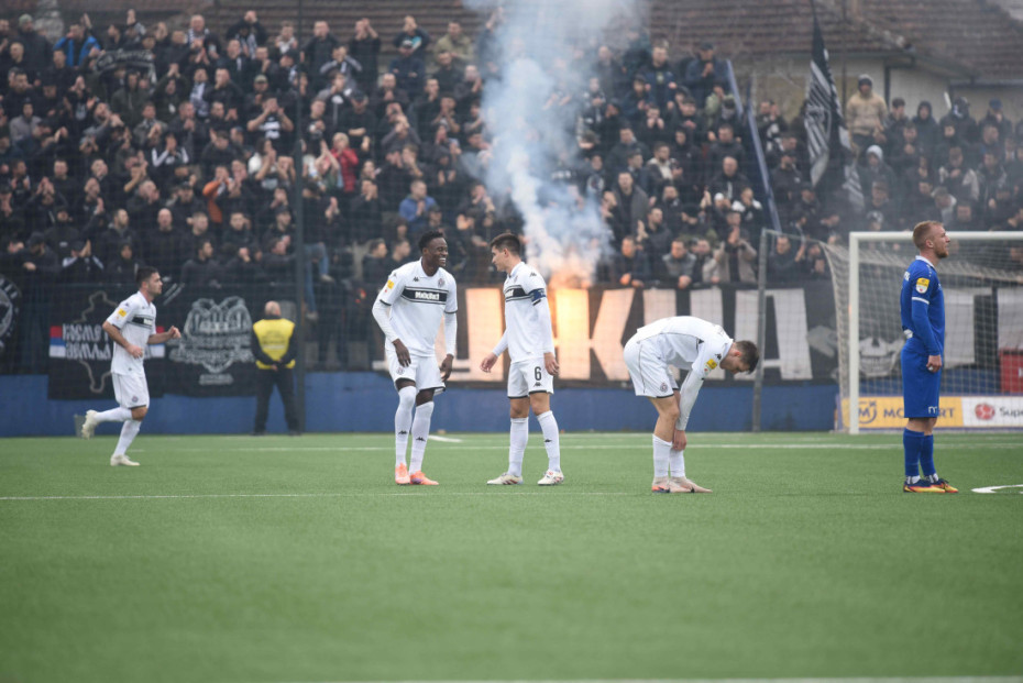 8. minut - BRZ ODGOVOR PARTIZANA! Sjajno je prošao Sek po levoj strani, ubacio je loptu u šesnaesterac, a Hajdarević ju je nespretno zahvatio i postigao autogol.