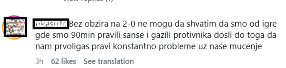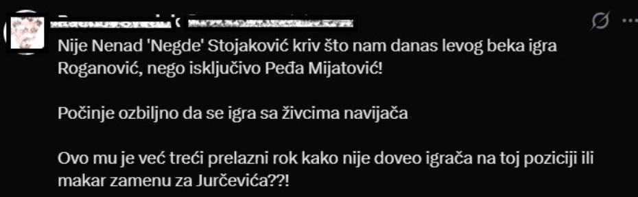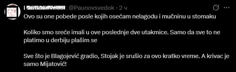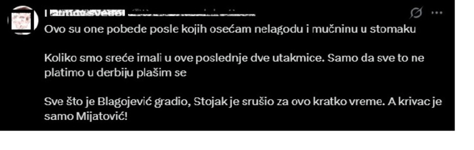 "Nenad Gvardiola nas sigurno vodi... do bruke", "Stojaković napolje", "Nenade odlazi", "Stojaković aut", "Bez obzira na 2-0 ne mogu da shvatim da smo od igre gde smo 90min pravili šanse i gazili protivnika došli do toga da nam prvoligaš pravi konstantno probleme uz nase mučenje", "Super igramo kako nemamo trenera", "Odlazi Nenade Stojakoviću", "Ne možemo ovako da igramo u rupi","Važno da čuvate neznalicu na klupi, to vam još važnije, bar da zna da da izjavu i tu pojma nema", samo su neki komentari navijača Partizana.