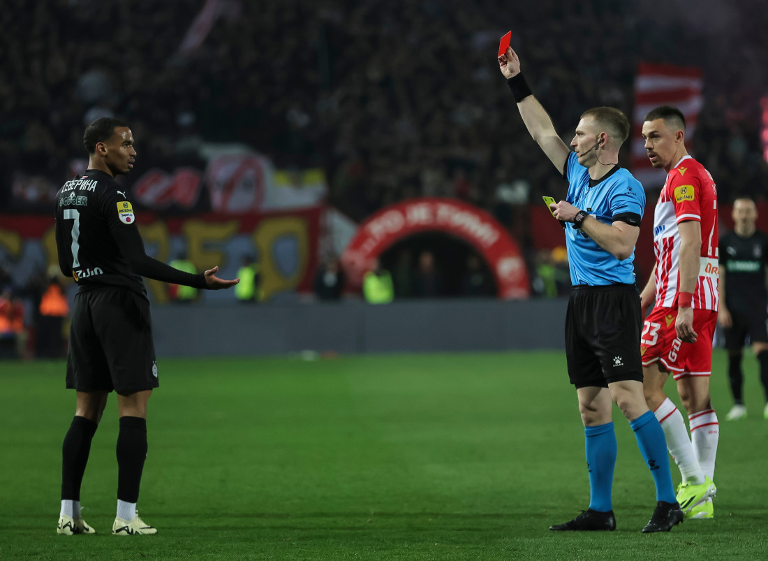 Gnev igrača Partizana navukao je u prvom poluvremenu, kada je dosudio prekršaj na ivici kaznenog prostora, a onda pomerio živi zid na čak 11 metara. Zamerili su mu u Humskoj ignorisanjem Spajićevog udaranja Saldanje, laktom u glavu, kada je prosto morao da mu pokaže žuti karton. U Humskoj su bili besni jer je prekršaj Hvanga, koji je kao poslednji igrač odbrane u kontri zaustavio Kalulua okarakterisao je kao žuti karton, a onda je Severin i posle jednog prekršaja pokazao drugi žuti, odnosno crveni.