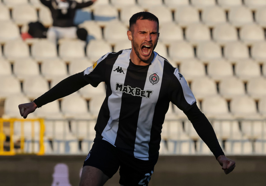 6. minut - GOL! Partizan je poveo preko Dragojevića koji je iskoristio sjajan centaršut Roganovića sa desnog boka kako bi glavom prosledio loptu u mrežu.