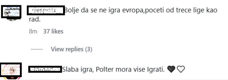 "Podrška treneru i ekipi, treba vremena da se popravi sve što su velemajstori uništili od novembra do sad", "Dobrooo je momci, svaka čast. Nedostaje Milošević, jebiga", "Polter mora vise da igra", "Ništa se od ovoga nebi desilo da Srđan Blagojević nije bio promenjen", "Jbg, treba vremena da se popravi ono što su oni slepci uradili ovih par meseci", komentari su navijača na društvenim mrežama.