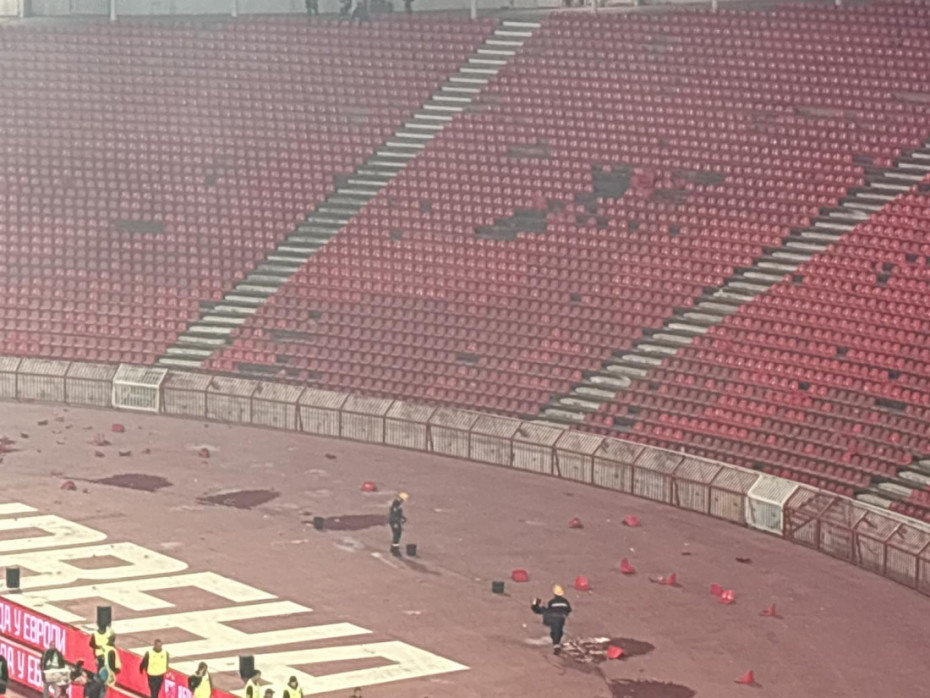 Tokom utakmice, navijači Partizana koristili su pirotehniku, bacali topovske udare i pravili nered, a kulminacija je usledila na južnoj tribini gde je pričinjena značajna šteta. Veliki broj stolica je polomljen i bačen na atletsku stazu ispred tribine, zbog čega su vatrogasne službe i nadležni radnici morali da intervenišu i uklanjaju posledice nakon završetka meča.