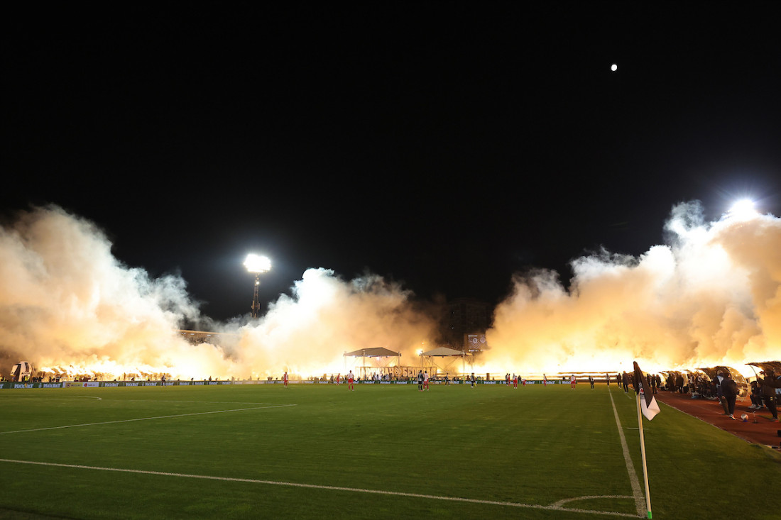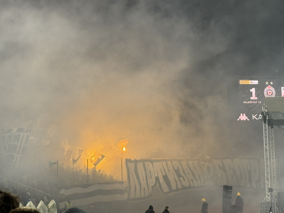 20. minut - Nova bakljada "grobara" i ponovo je na ivici da utakmica bude prekinuta zbog dima iznad terena.