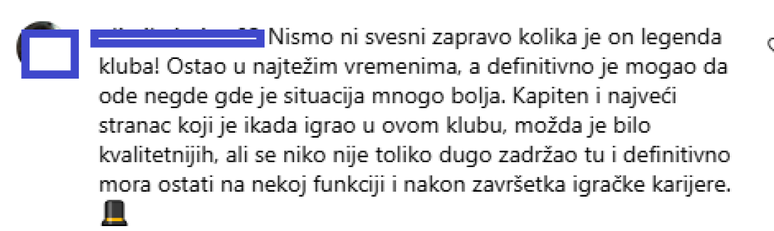 "Nismo ni svesni zapravo kolika je on legenda kluba! Ostao u najtežim vremenima, a definitivno je mogao da ode negde gde je situacija mnogo bolja. Kapiten i najveći stranac koji je ikada igrao u ovom klubu, možda je bilo kvalitetnijih, ali se niko nije toliko dugo zadržao tu i definitivno mora ostati na nekoj funkciji i nakon završetka igračke karijere".