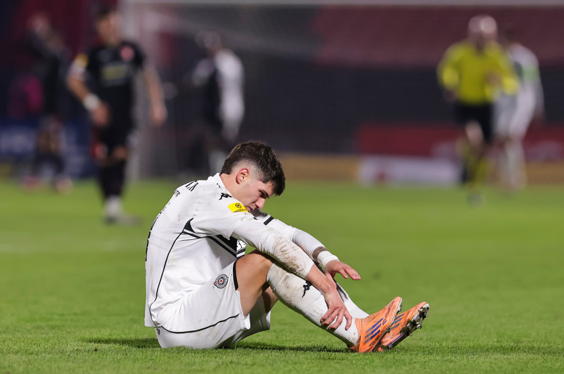 42. minut - Auuuh, šta je propustio Radnički. Zicer, gotovo siguran gol, ali se u poslednjem trenutku isprečava Đurđević koji spašava Partizan.