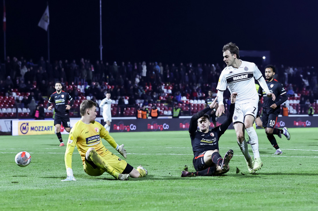 49. minut - Opet Radnički preti, sada Bevis šutira, ali Milošević brani nogom.