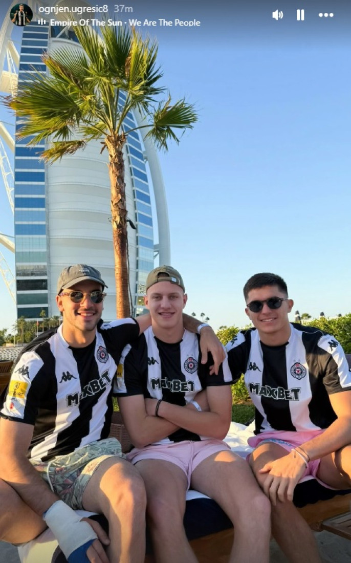 Zbog toga se na beg iz Beograda u toplije krajeve odlučio nerazdvojni trio "parnog valjka". Napadač Jovan Milošević (20), zamenik kapitena Vanja Dragojević (19) i vezista Ognjen Ugrešić (19) zajedno uživaju u sunčanom Dubaiju.