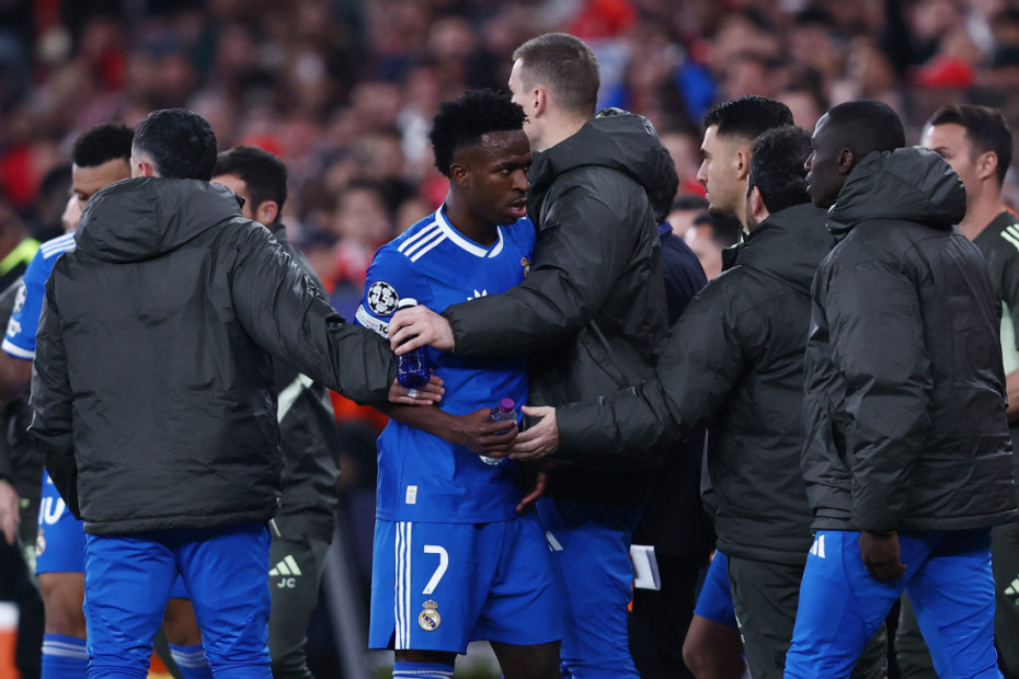 Pobedio je Real Madrid Benfiku 1:0 u Lisabonu u prvoj utakmici plej-ofa Lige šampiona, pobednički gol delo je Vinisijusa Žuniora, ali su nakon njega usledile dramatične scene.