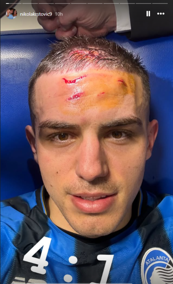 Krenuo je je na loptu glavom, a onda je Remi Bansebaini podigao nogu i kramponima ga zakačio po glavi i ozbiljno raskrvario. Sudija Hose Marija Sančez je posle gledanja VAR shvatio da mora da sudi penal. Bivši napadač Crvene zvezde je odmah pao, bilo je i krva, a lekari su hitno uleteli na teren i odmah mu stavili zavoj oko glave.