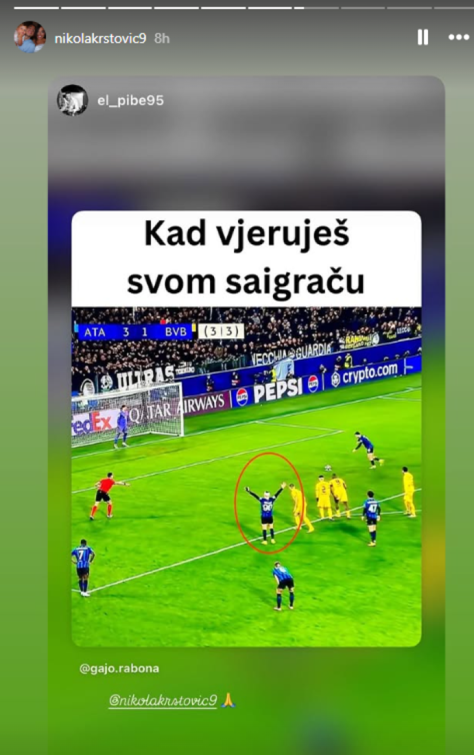 "Kad veruješ saigraču", poručio je nakon meča.