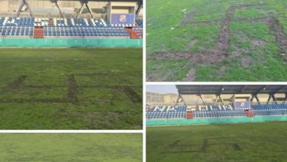 U jutarnjim časovima u ponedeljak, 1. decembra, neko je na terenu fudbalskog kluba Solin iscrtao simbol koji je najviše ostao vezan uz nacističku Nemačku, svastiku, odnosno kukasti krst.