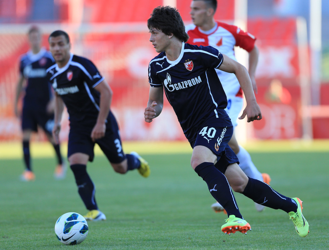 Srpski napadač je potom debitovao i za prvi tim u maju 2014, kada mu je tadašnji trener crveno-belih Slaviša Stojanović u poslednjem kolu dao šansu u završnici meča protiv Vojvodine. Joviću je samo pet minuta trebalo da na svom debiju i zatrese mrežu, čime je postao najmlađi strelac u istoriji kluba sa "Marakane" sa 16 godina, 5 meseci i 5 dana.
