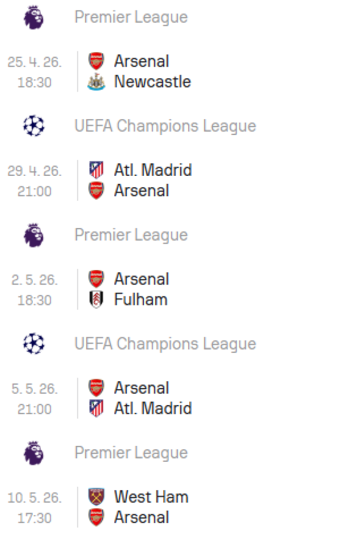 Raspored oba tima uključuje više zahtevnih utakmica, ali dodatne obaveze Arsenala u evropskom takmičenju utiču na plan rotacije i opterećenje igrača. Siti, uz fokus na domaće takmičenje, ima mogućnost da rasporedi snage i prilagodi sastav u duelima sa slabije rangiranim rivalima.