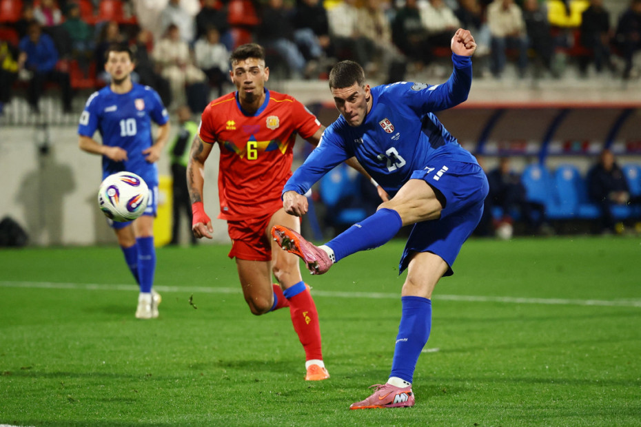 Fudbaleri Srbije, koji su put Andore krenuli bez pet igrača, razočarali su svojom igrom protiv autsajdera u prvom poluvremenu, u kom nisu uputili nijedan šut ka okviru gola, ali su zato primili pogodak sa pola terena. Bilo je pravo mučenje gledati "orlove" na terenu u prvih 45 minuta, jedva su uspevali da dođu do šanse, pošto su domaći štoperi "zaključali" Mitrovića i Vlahovića.