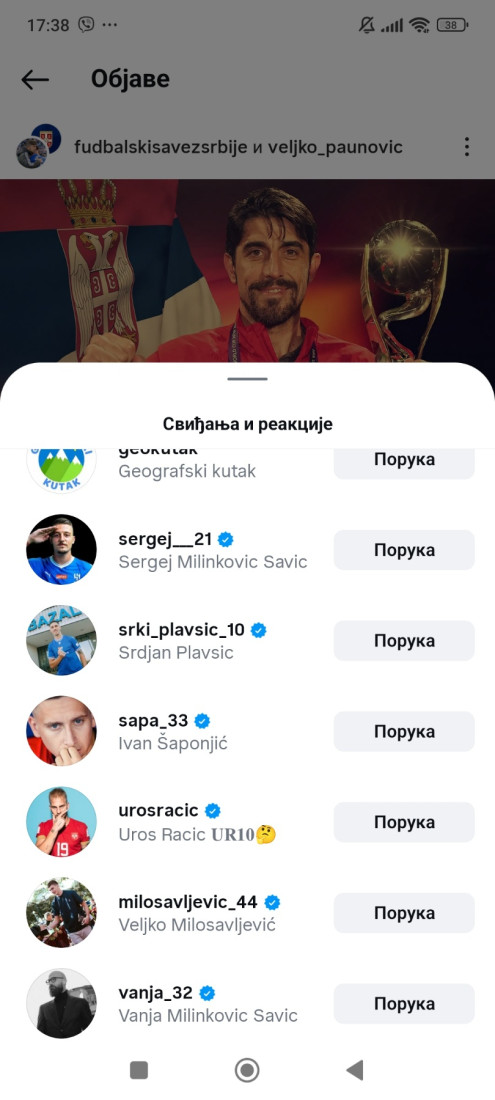 U svakom slučaju, Srbija sad ima novog selektora, videćemo da će nestati Sergejeva blokada, a možda se u tim vrati i njegov brat Vanja, golman Napolija. On je takođe lajkovao obraju FSS na Instagramu, a dugo ga nije bio u reprezentaciji.