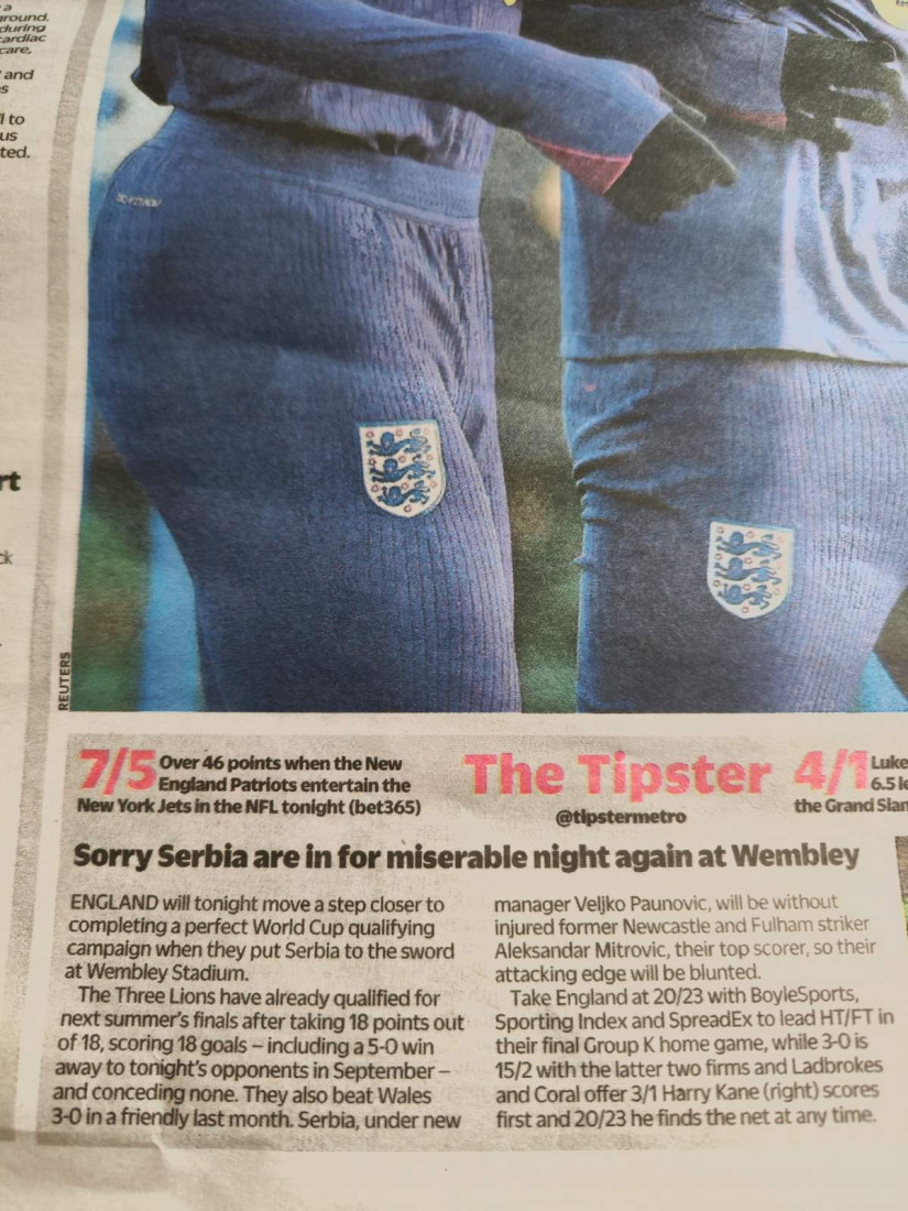 Potom je usledio šokantan poraz od Albanije u Leskovcu (1:0) i promena na mestu selektora, ali kolege iz Londona i daju nikakve šanse večerašnjem posetiocu na "Vembliju" (20.45 Arena 1 premijum).