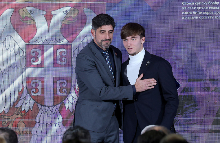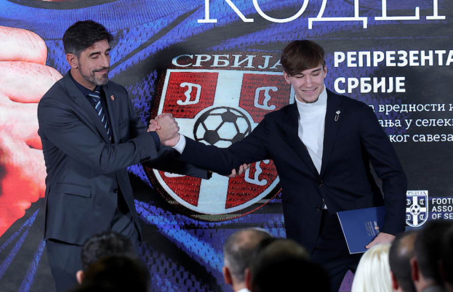 Selektor fudbalske reprezentacije Srbije Veljko Paunović je simbolično uručio prvi primerak Kodeksa reprezentativca najperspektivnijem igraču Srbije, inače fudbaleru Crvene zvezde - Vasiliju Kostovu.