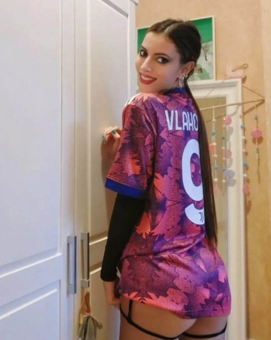 Luda je za Juventusom, sve je kod nje u znaku giganta iz Torina, grb krasi sobna vrata, kupaći je u Juve fazonu, ima brdo crno-belih dresova igrača...