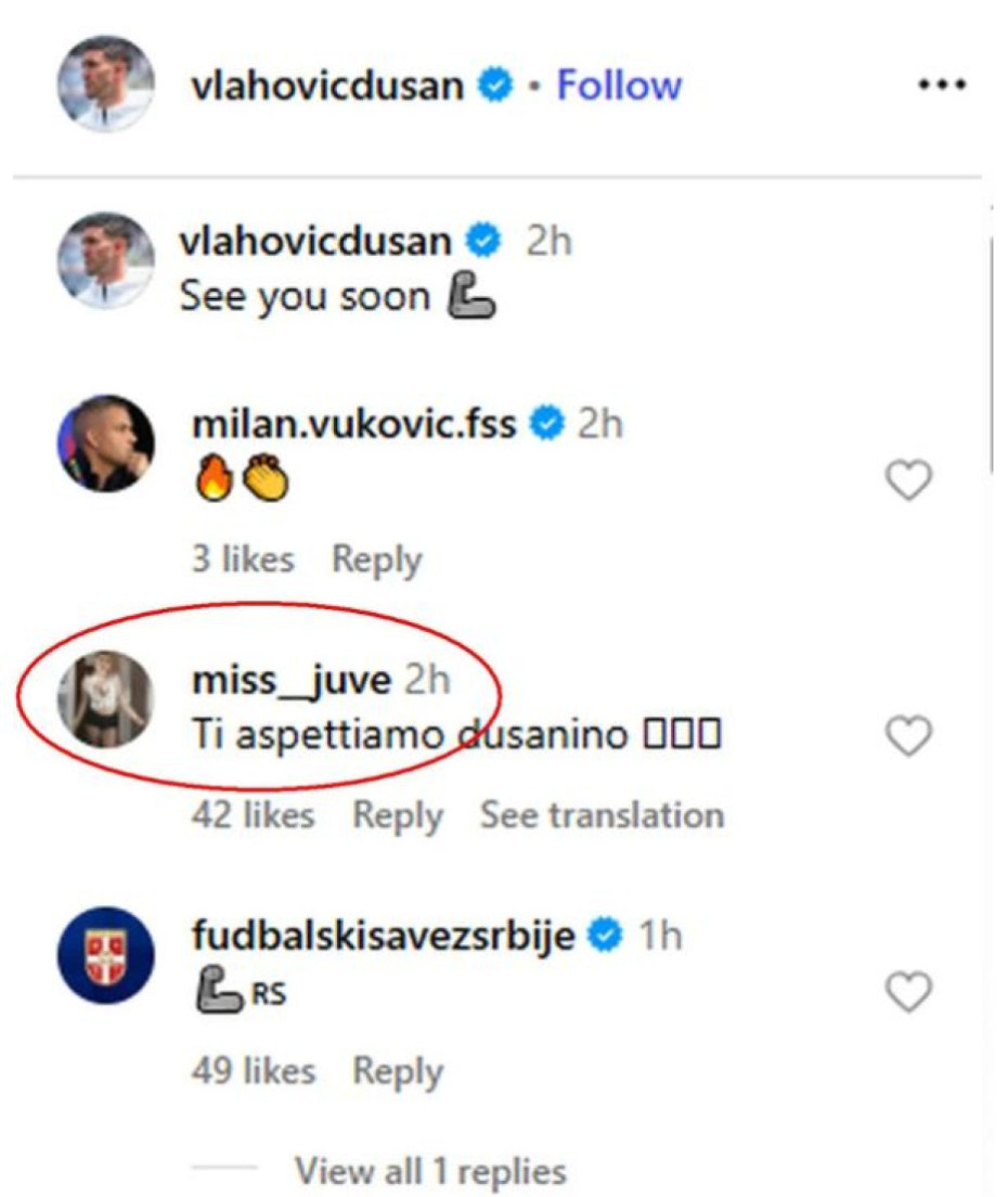- Dušanino, čekamo te - poručila je ova devojka koja, sudeći po Instagram informacijama, živi u Rimu.