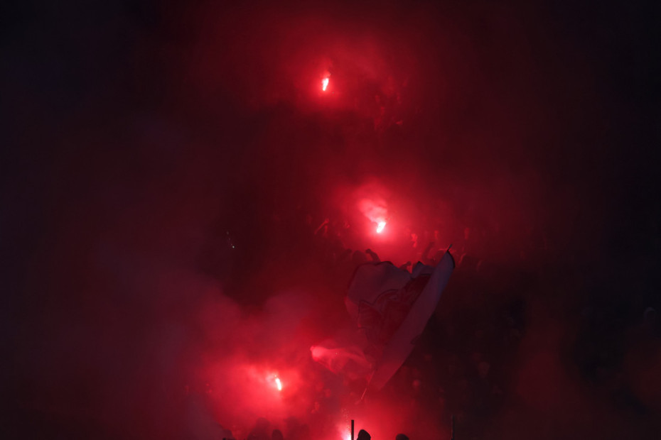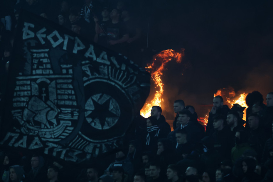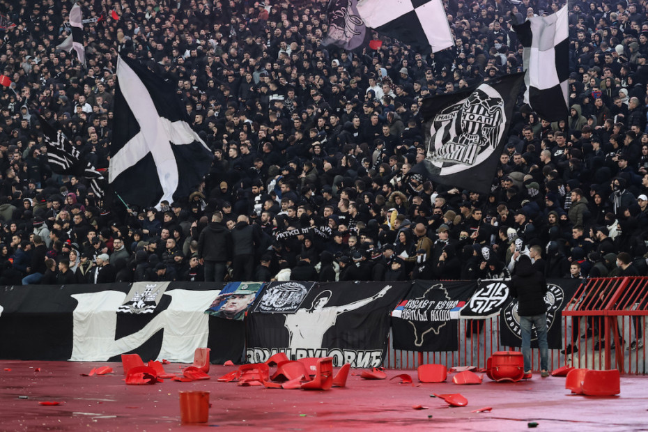 Navijači su napravili spektakl na tribinama, bilo je burno, u nekim momentima previše. Videmo smo "rat" transparentima, bakljadu, vatromet, ali i s druge strane požar, jer su navijači Partizana zapalili deo južne trbine, na sreću niko nije povređen.