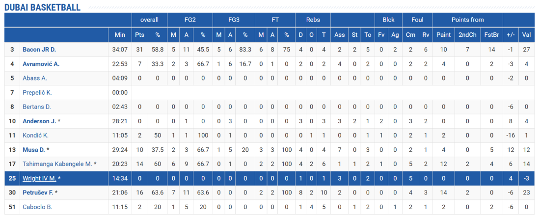 Najbolji igrač Dubaija i plejmejker Evrolige, po svom uverenju, Mekinli Rajt je pružio bez ikakve dileme najgoru partiju u dresu tima čiji trener je Jurica Golemac.
