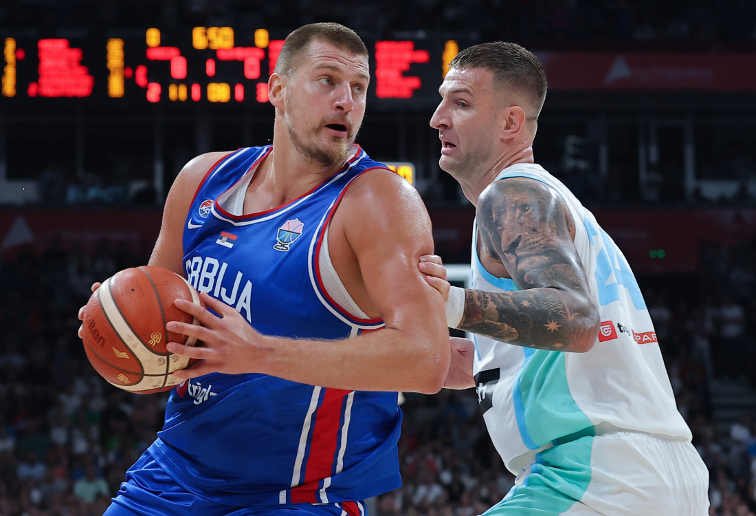 19. minut - Kakav okret Jokića! Roling i rutinsko polaganje. Uzdasi navijača Srbije. Međutim, Krampelj uzvraća dvojkom.