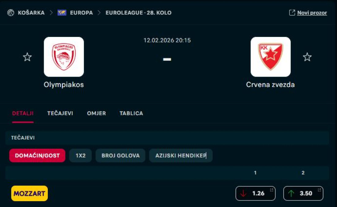 Ekipa Jorgosa Barcokasa u dobrom raspoloženju dočekuje bivšeg šampiona Srbije, nakon što je u prethodnom kolu elitnog takmičenja ubedljivo savladala Virtus iz Bolonje (109:77) i upisala 17. trijumf u sezoni, čime se učvrstila na drugoj poziciji na tabeli (skor 17-9), iza vodećeg Fenerbahčea.