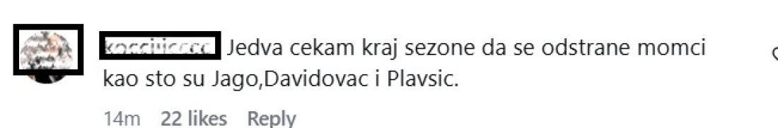 "Jedva čekam kraj sezone da se odstrane momci kao sto su Jago, Davidovac i Plavšić", "Gledaš Batlera, Nvoru, Semija i onda gledas Plavšića, Miljenovića, Jaga, Davidovca bem ti muku", "Plavsic i Jago kao Stokton i Meloun. Zamisli kad je on morao da ih posle minut igre zajedno zameni obojicu na tri min do kraja na 10 razlike za nas, da se slucajno ne bi uslo u neizvesnu zavrsnicu.. Kakva dva kosarkaska kriminalca", "Ja ne znam šta je Obradović vidio kod Jaga stvarno dečko ne zna kud goni jedva čekam povratak Kartera".