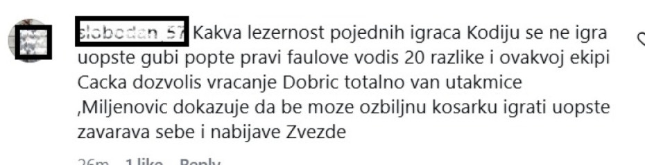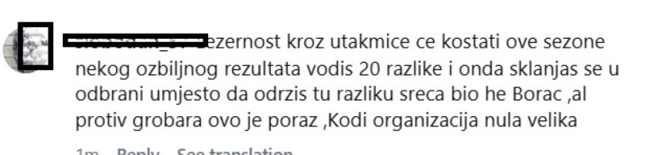 "Ležernost kroz utakmice će koštati ove sezone nekog ozbiljnog rezultata, vodiš 20 razlike i onda sklanjaš se u odbrani umesto da odršiš tu razliku. Sreć bio je Borac ali protiv "grobara" ovo je poraz. Kodi organizacija nula velika".