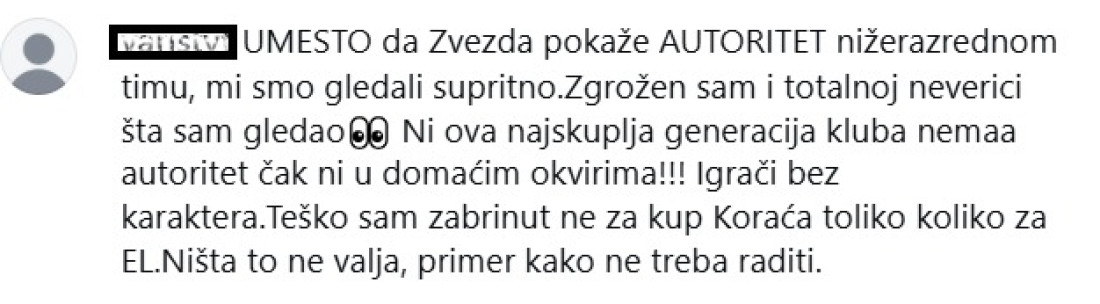 I navijači na društvenim mrežama su nešto slično rekli igračima. Ne mogu bez stresa da odgledaju Zvezdin meč ni u Kupu, zameraju im ležernu i nezainteresovanu igru.