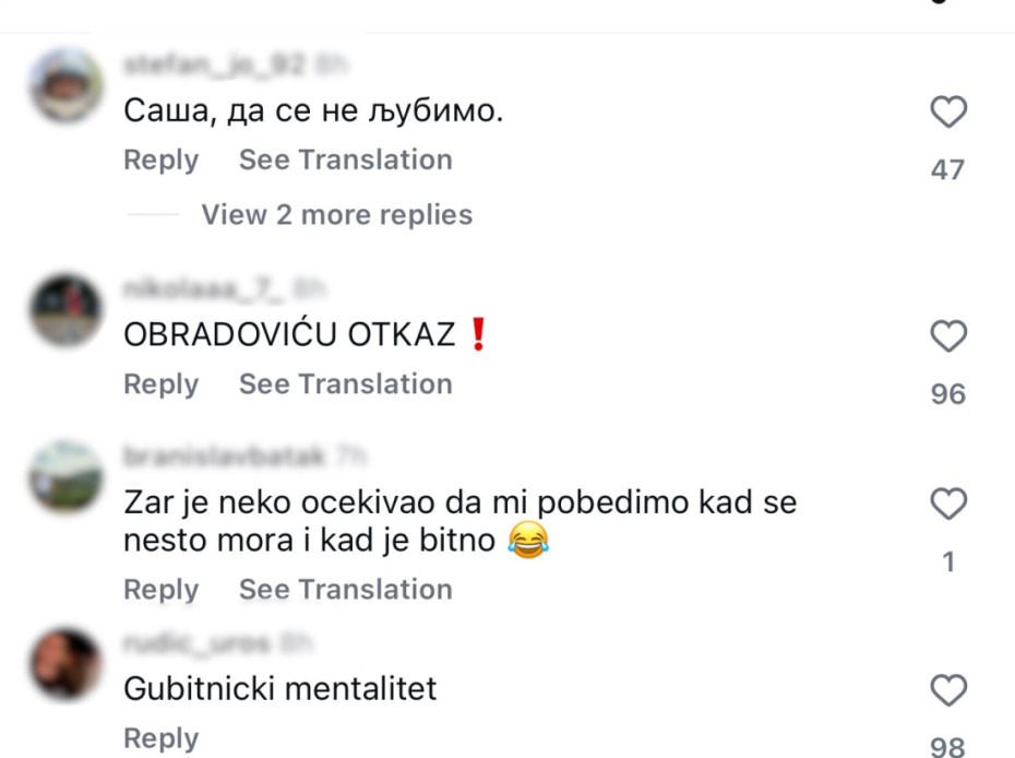 Zbog svega viđenog na terenu, kao i poraza u najvažnijem delu sezone, navijači su na društvenim mrežama oštro kritikovali i igrače zbog nedovoljnog zalaganja u pojedinim trenucima, ali i trenera, za kojeg, kao i mnogo puta ranije, traže hitnu smenu.
