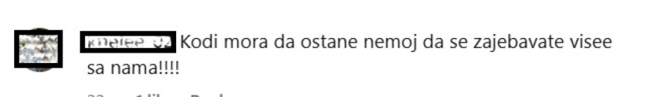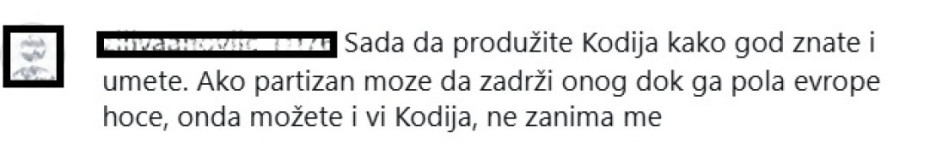 "Sada da produžite Kodija kako god znate i umete. Ako partizan moze da zadrži onog dok ga pola evrope hoce, onda možete i vi Kodija, ne zanima me", "Kodi mora da ostane nemoj da se zajebavate vie sa nama", jasna je poruka na društvenim mrežama.