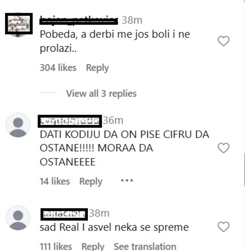 "Mora bolja odbaran", "Koliko mi nedostaje Batleri. Verujem u njega", "Ko je bacio crnu magiju na Batlera? Ajde Džerade sta ti se desilo ovo nisi ti ajde čovece ajdeeeeeee Nvora".