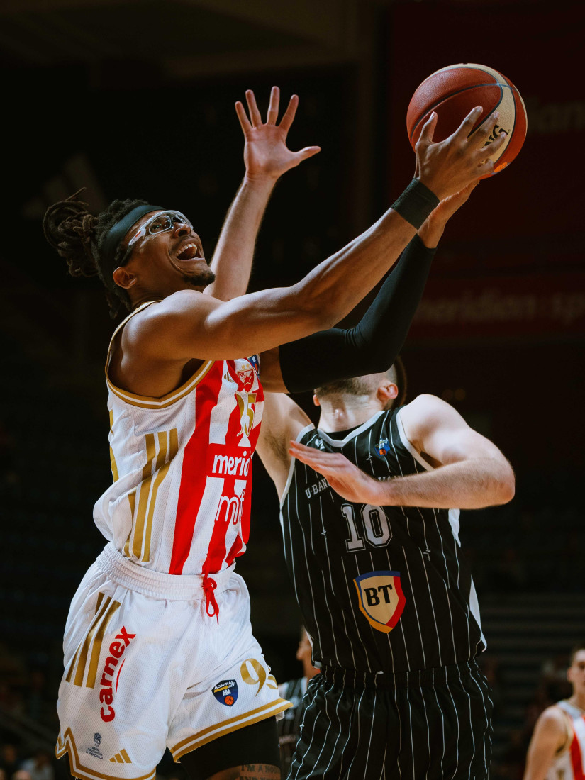 25. minut - Kad je teško, Dobrić! Pogađa sada kapiten Crvene zvezde za tri poena i odbija nalet Kluža koji je mogao i do izjednačenja.
