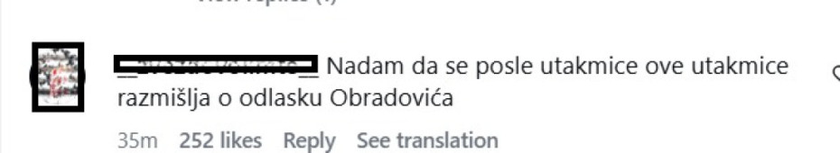 "Nadam da se posle utakmice ove utakmice razmišlja o odlasku Obradovića", "Zahvaljujemo se na saradnjji sasi obradovic msm da je vreme".