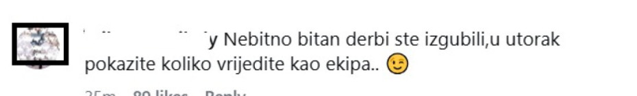 "Kalina hvala ti za sve ali brate sto je mnogo mnogo je", "Kalina brat igrao za njih", "Nebitno bitan derbi ste izgubili,u utorak pokazite koliko vrijedite kao ekipa.. ", "Sramota je da zvezda izgleda ovako u derbiju", komentari su navijača Zvezde na društvenim mrežama.