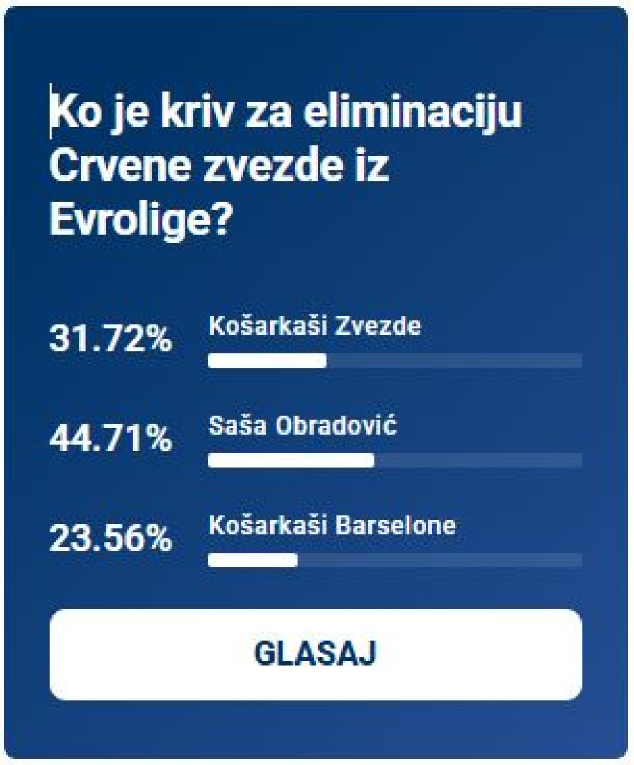 Na pitanje ko snosi najveću odgovornost za eliminaciju, najveći broj glasova dobio je upravo Obradović – 44,71 odsto. Njegove odluke tokom meča u Španiji, ali i kroz čitavu sezonu, bile su pod lupom javnosti. Kritike su se odnosile na rotacije, izmene i taktička rešenja, što je izazvalo nezadovoljstvo i kod navijača i kod dela stručne javnosti.