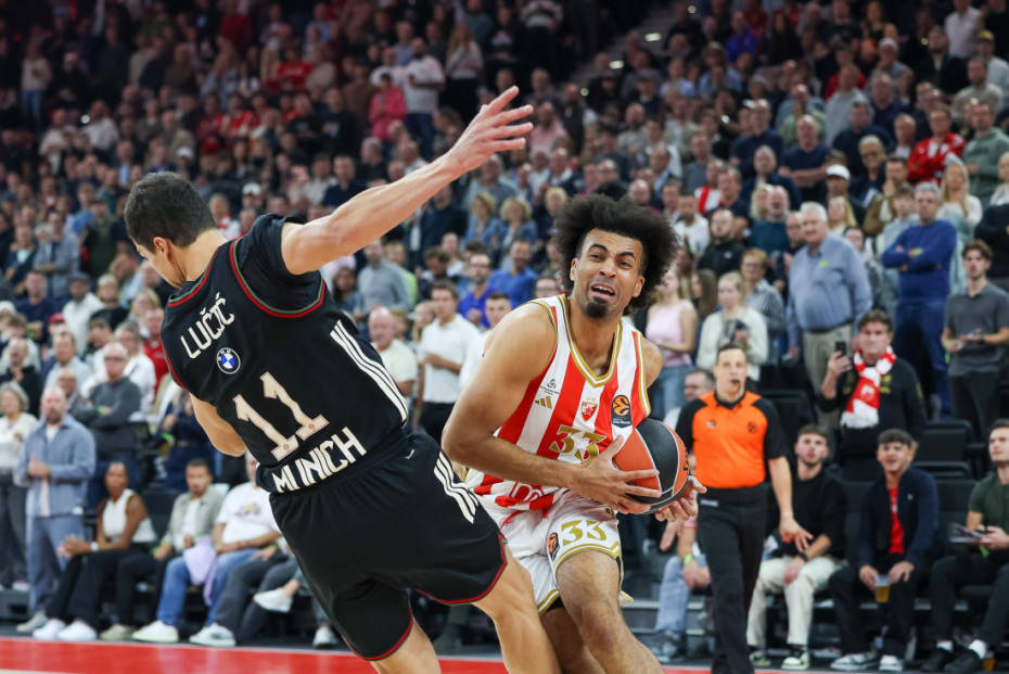 20. minut - Kraj prvog poluvremena u Minhenu, Crvena zvezda ima prednost od 55:48. Odlična šuterska forma Kodija Milera-Mekintajera, a sjajno su se pokazali Džordan Nvora i Tajson Karter. Uglavnom, obećavajućih prvih 20 minuta za Crvenu zvezdu.