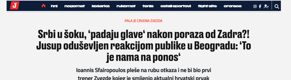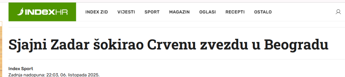 "Verovali ili ne, Zadrani su usred Beograda pobedili evroligaša Crvenu Zvezdu (85:79). Vodili su hrvatski gosti veći deo utakmice a samo je poslednja četvrtina pripala beogradskim domaćinima ali bilo je to kasno buđenje".